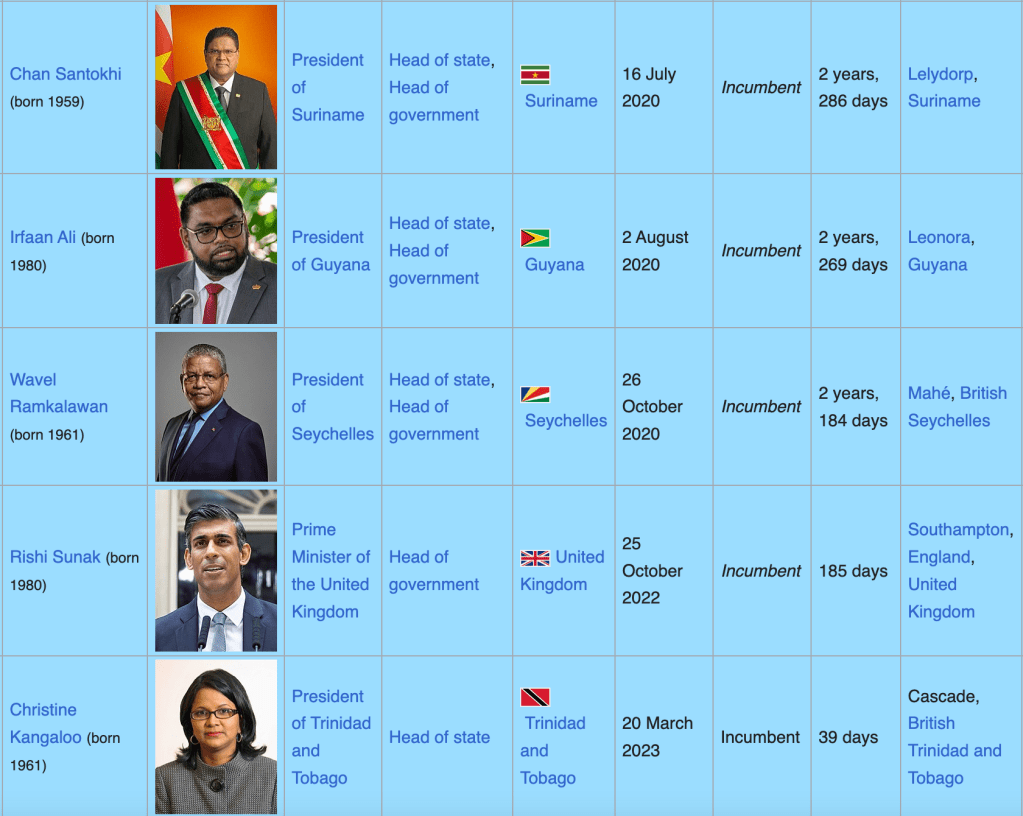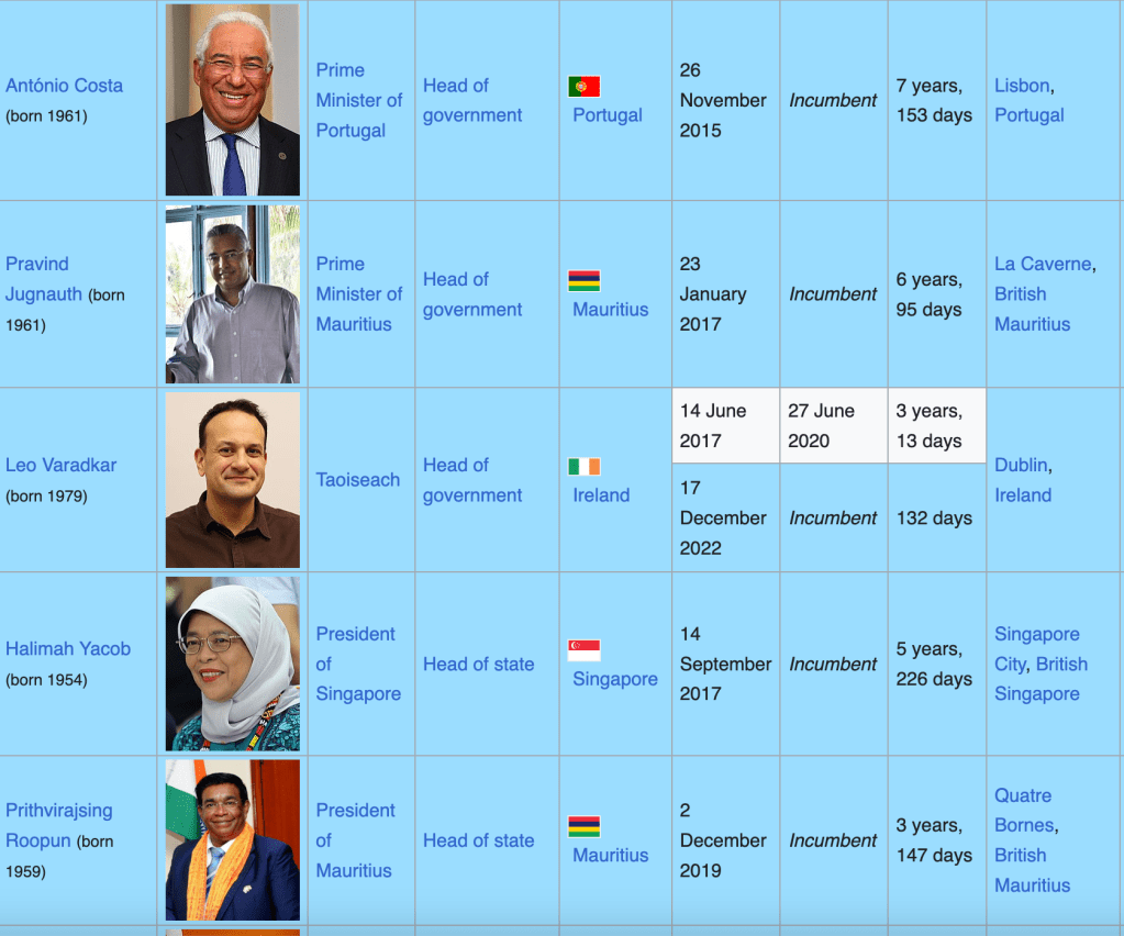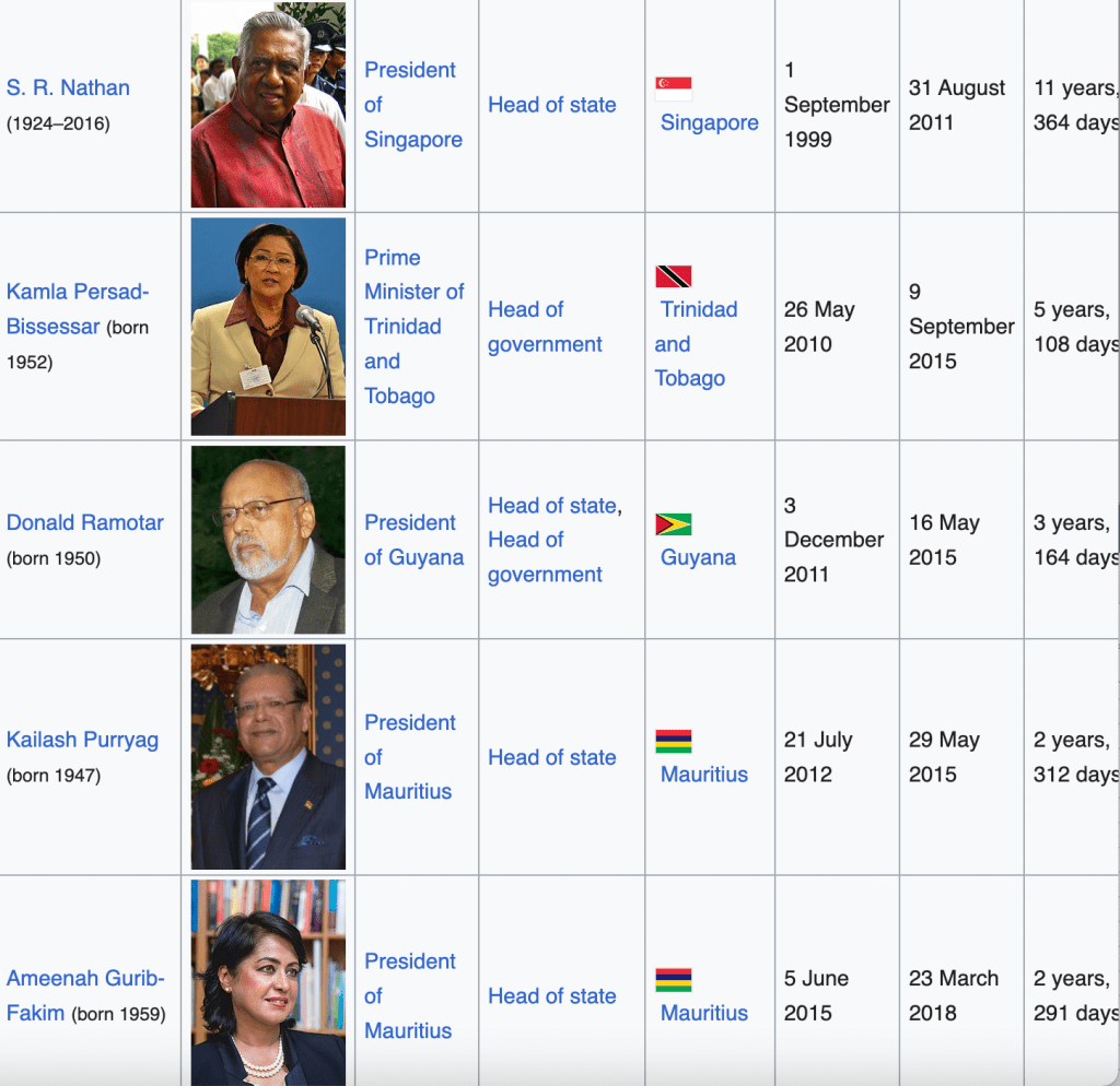 Indian origin leaders, seven in high ranks and over sixty of them hole cabinet positions, in as many as 15 countries.