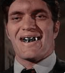 Kanye West was inspired by 7ft 2in tall actor Richard Dawson Kiel, who portrayed Jaws in James Bond film The Spy Who Loved Me (1977) where he battles a shark in a shark tank, has a construction scaffold collapse on him and drives a car off a cliff into someone’s roof – still lives to tell about it, and Moonraker (1979) Jaws survives a fall from an airplane and a high-speed tramway crash with is steel capped teeth.
