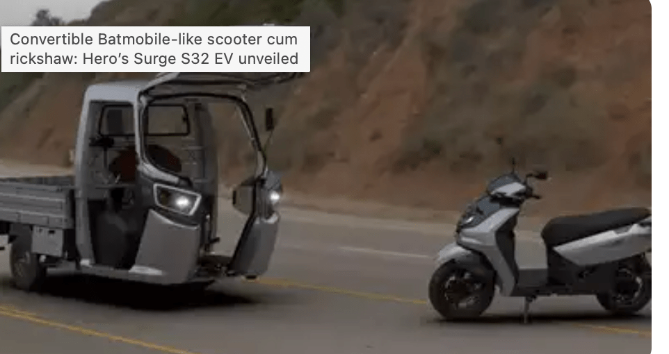 Hero’s Surge S32 EV has been unveiled by Hero MotorCorp, an Indian multinational motorcycle and scooter manufacturer headquartered in Delhi and one of the world’s largest two-wheeler manufacturer that has a market share of about 46% in the Indian two-wheeler industry. Surge S32EV is a unique electric vehicle with a modular design transforming a three-wheeled tuk tuk a onomatopoeic mimicking the sound of small two-cycle engine( Autorickshaw ) to a electric scooter in a flash.