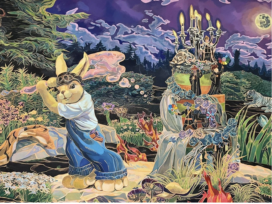 2023 120 x 140cm we see the rabbit being feisty and aggressive at the same