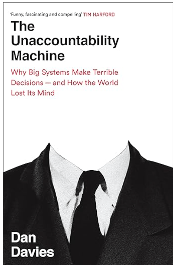 Dan Davies calls an “accountability sink”  situation in which a human system delegates decision-making to a rule book rather than an identifiable individual.  If something goes wrong, no one is held to account. Davies looks at what’s gone wrong, among what might have been, had the world listened to Stafford Beer when it had the chance.