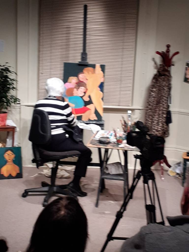 WHEN ART AND ACTING MEET AND SHAKE HANDS Written performed and painted by KARA WILSON Wife of renowned actor Tom Conti and writer and performer in several plays, Kara Wilson does a show involving painting a Beryl Cook piece of artwork which can be bought at a later date by admirers. The title of the artwork done live on stage is the appropriately named “I’ve a Dickie” – one of Cook’s many funny pieces described broadly as “naive art”. Many of Cook’s paintings are to be found in card shops amongst other venues and they are all colourful, mood enhancing and humorous. Poetess – Pam Ayres and her husband attended on Thursday 3 October. Kara brings with her an easel brimful of paint and as she discusses her life (that of Beryl Cook) she paints and finishes with putting a thong in full on the male character taken from one of Cook’s famous artworks with a few ladies taking a peek at the “contents”. The eyeshadow for the viewing ladies came briefly before the thong was “coloured in”. This drama has clearly been extremely carefully thought out before the production.