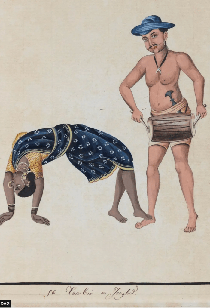 There are also 45 paintings highlighting from Pondicherry showing the work sought by French collectors in 1800. One painting showing 10 men in hats and lion clothing rowing through surf Naggers ( swimmers) and the boat a Chilingue.