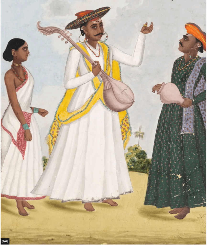 Another painting depicted by various castes with tools of their trade capturing natch girls, sepoys, Judges, toddy tappers and even snake charmers.